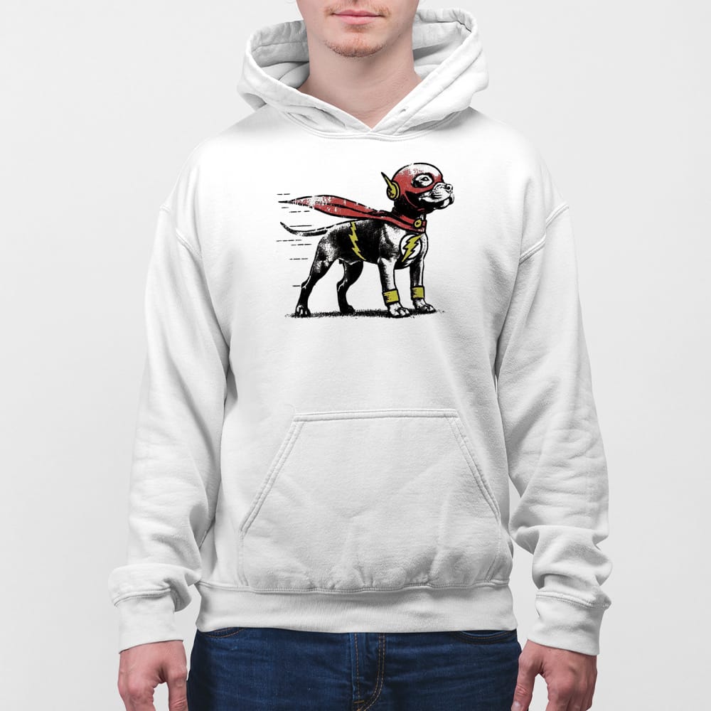 The superhero motif draws directly from comic book history, where characters like The Flash represented speed, justice, and the will to fight for others. This fusion of a pitbull with superhero aesthetics creates a visual narrative that bridges pop culture with social storytelling. Just as comics gave hope during the Great Depression and post-war years, this design suggests that everyday heroes can be found in our neighborhoods, sometimes with four paws.