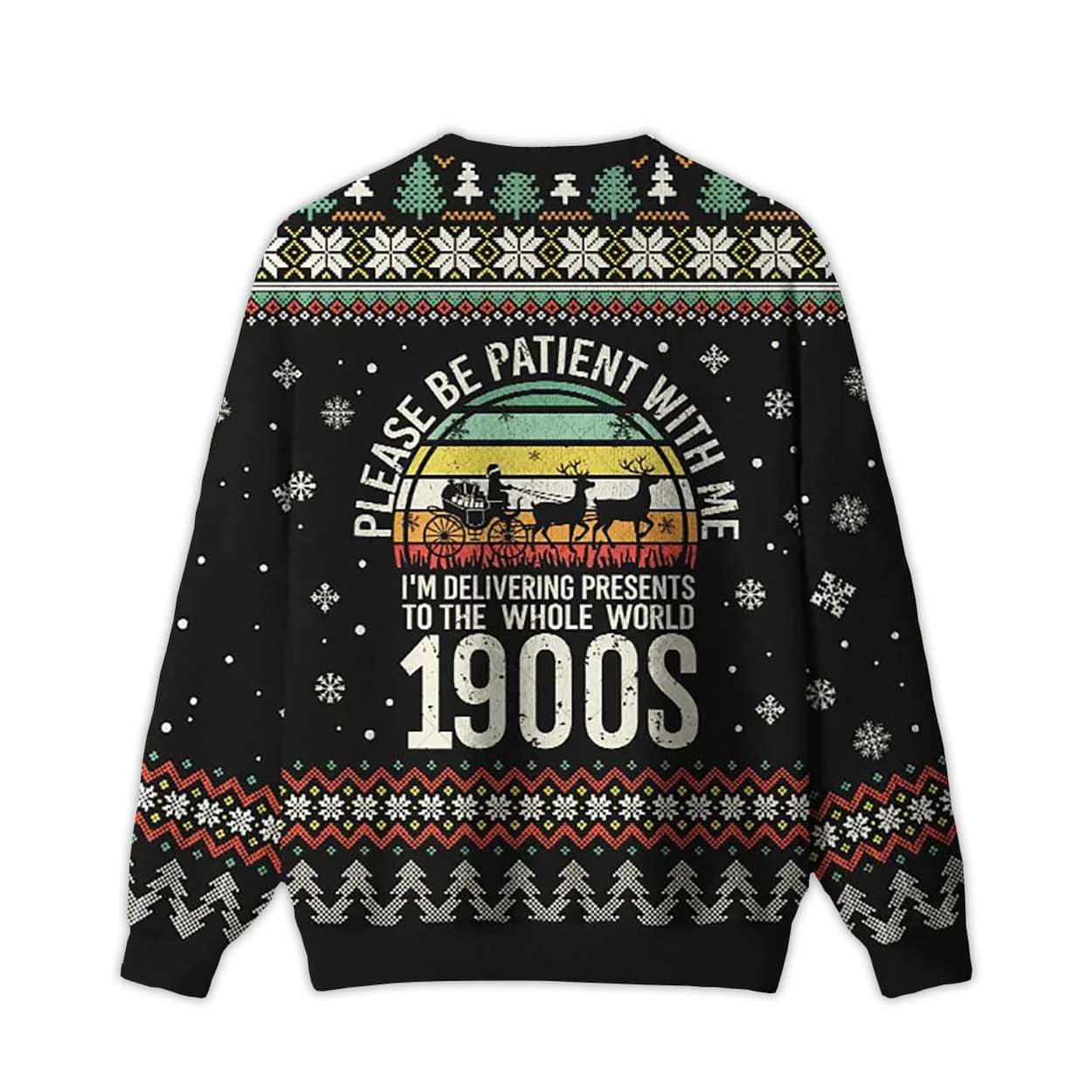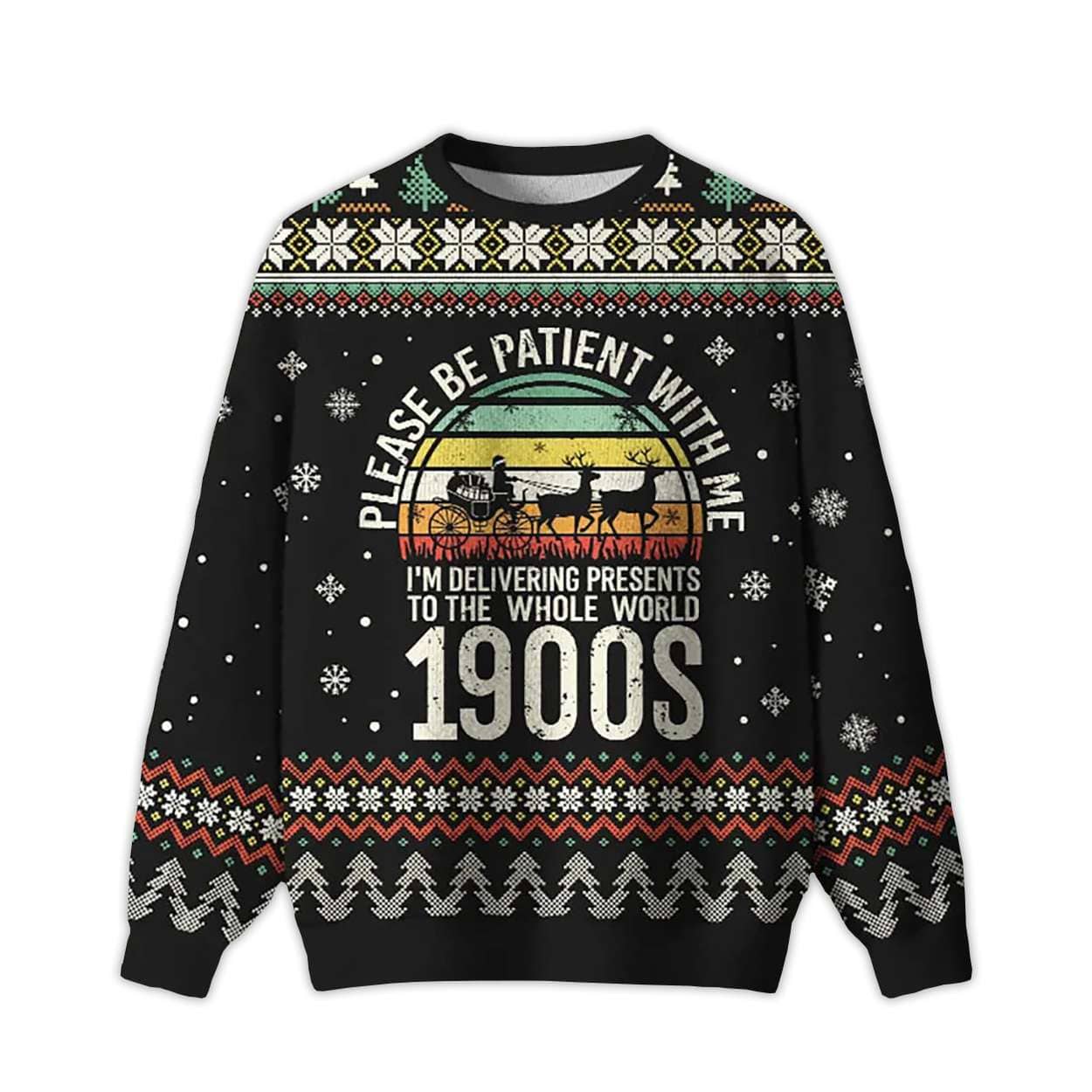 Embrace the whimsical charm of the Please Be Patient With Me Ugly Christmas Sweater. Featuring a nostalgic Santa silhouette and a playful message, this design blends retro storytelling with global themes. Perfect for those who appreciate humor, history, and holiday spirit.