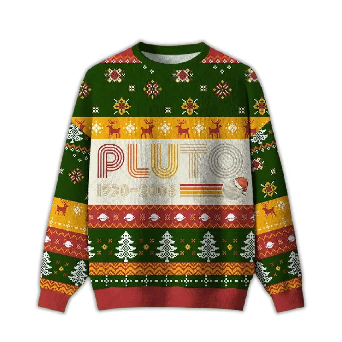 The Pluto Nerd Ugly Christmas Sweater pays tribute to Pluto’s planetary legacy from 1930 to 2006. With retro space vibes and cosmic flair, it’s perfect for astronomy buffs, science teachers, and anyone who still roots for the underdog of the solar system.