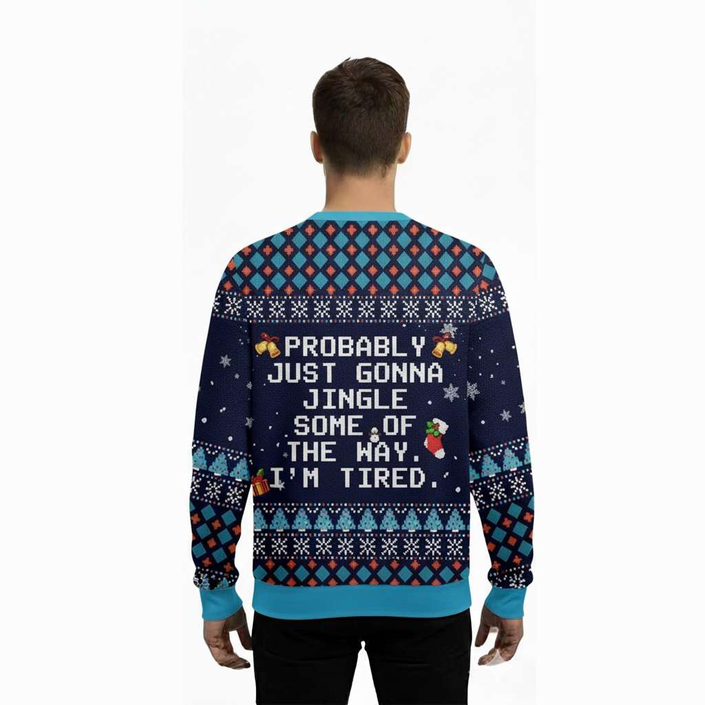 This witty Probably Just Gonna Jingle Some Of The Way I’m Tired Ugly Christmas Sweater blends holiday humor with relatable exhaustion. Perfect for introverts, overworked elves, and anyone who’s ever felt festive fatigue. Make spirits bright—just not too bright.