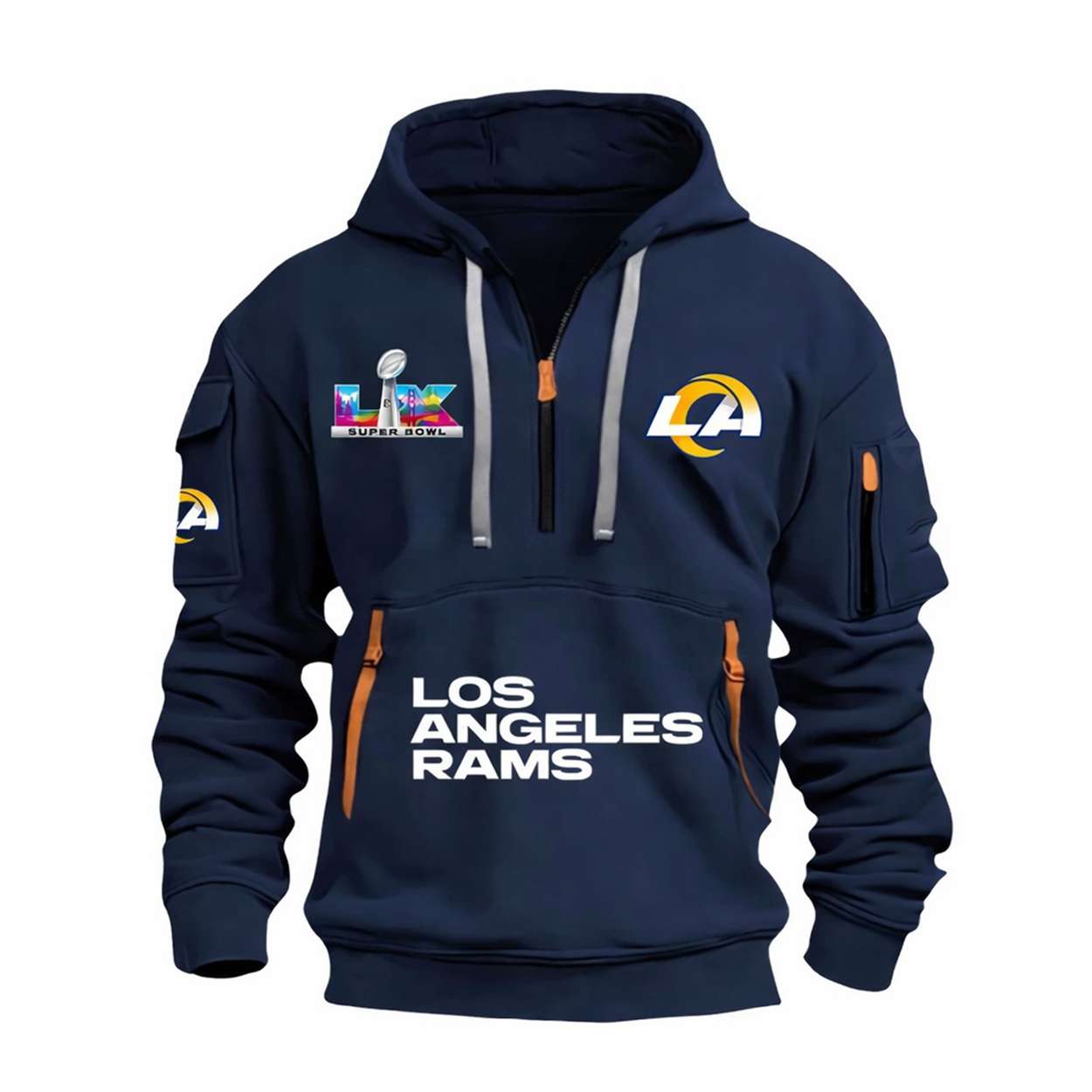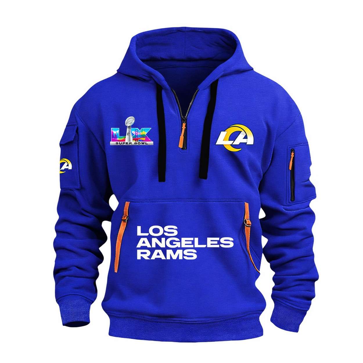 Show your pride for the Rams’ 2026 Super Bowl triumph with the Rams SBowl 2026 Hoodie Half Zipper. Featuring bold graphics and historic emblems, this hoodie honors a season of grit, unity, and unforgettable plays that reshaped Los Angeles football history forever.