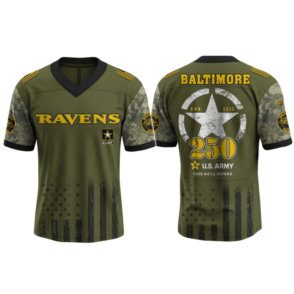 Ravens US ARMY 250th Birthday Celebration Football Jersey 2025 – A Tribute to Service & Legacy