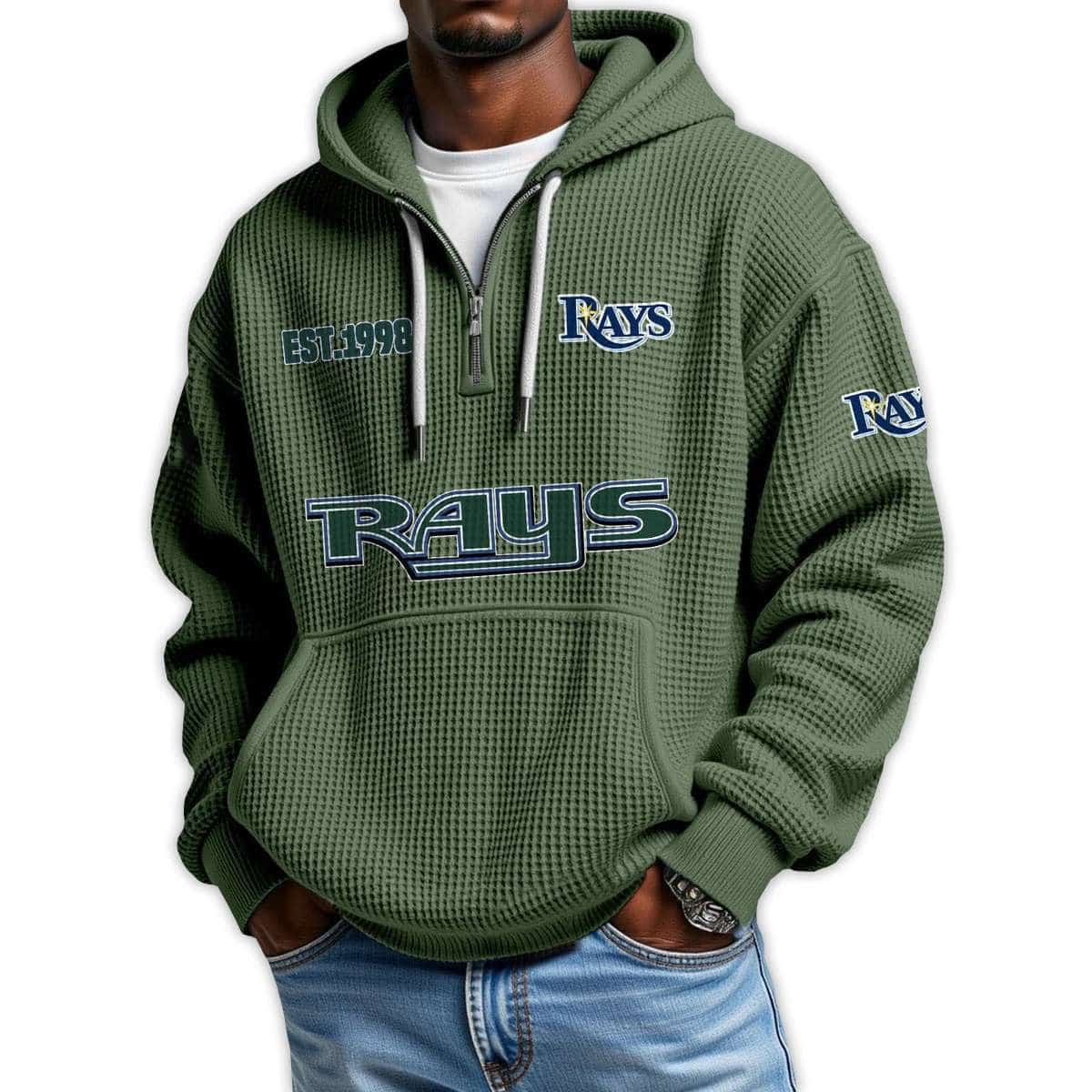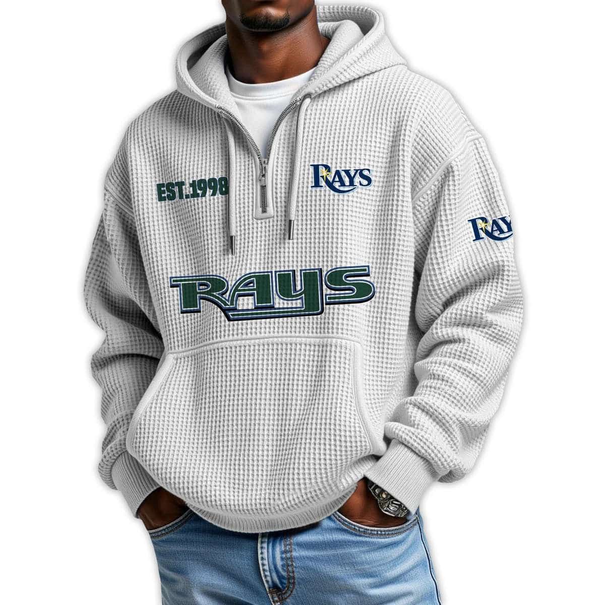 Show your pride with the Rays Est 1998 Quarter Zip Waffle Hoodie. Featuring bold graphics and historic emblems, this hoodie connects fans to Tampa Bay’s rise, iconic players, and the resilient spirit of a team forged in modern baseball’s toughest battles.