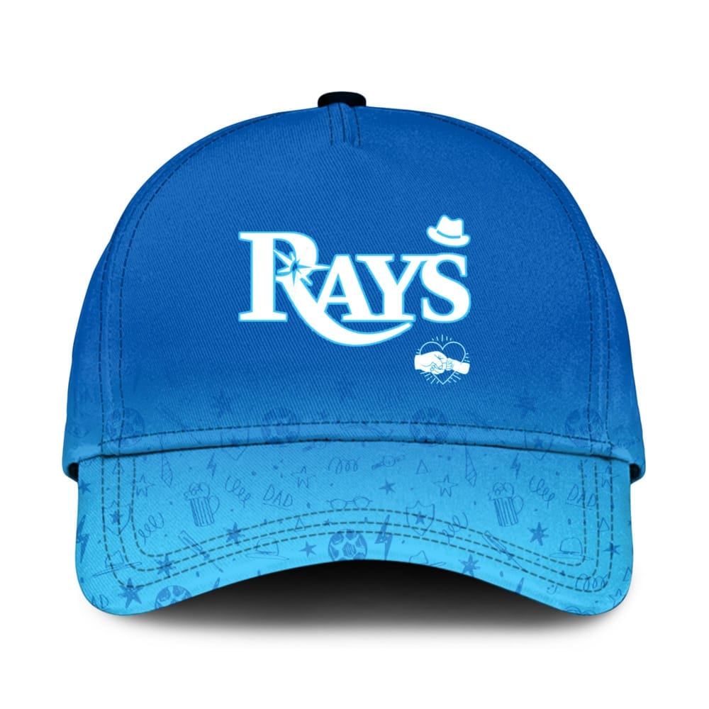 The Rays Father’s Day 2025 Hoodie is more than just fan gear—it’s a visual story of strength, loyalty, and shared passion between fathers and their children. The back features a powerful image of a dad and child both wearing Rays logos, standing shoulder to shoulder. On the front, the “Rays” name is creatively reimagined with a mustache and hat above the “a”—a subtle nod to the father figure who guides and supports from behind the scenes.