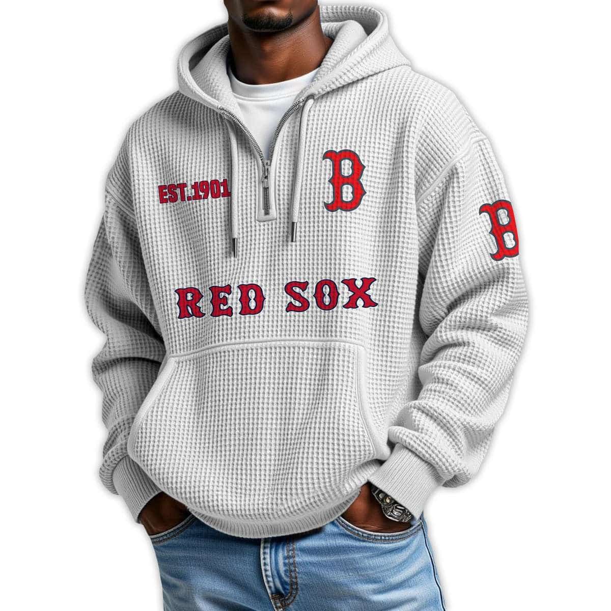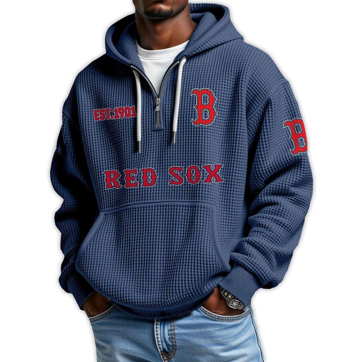 Show your Boston pride with the Red Sox Est 1901 Quarter Zip Waffle Hoodie. Featuring bold graphics and historic emblems, this hoodie connects fans to over a century of baseball legacy, iconic players, and the resilient spirit of Fenway’s faithful.
