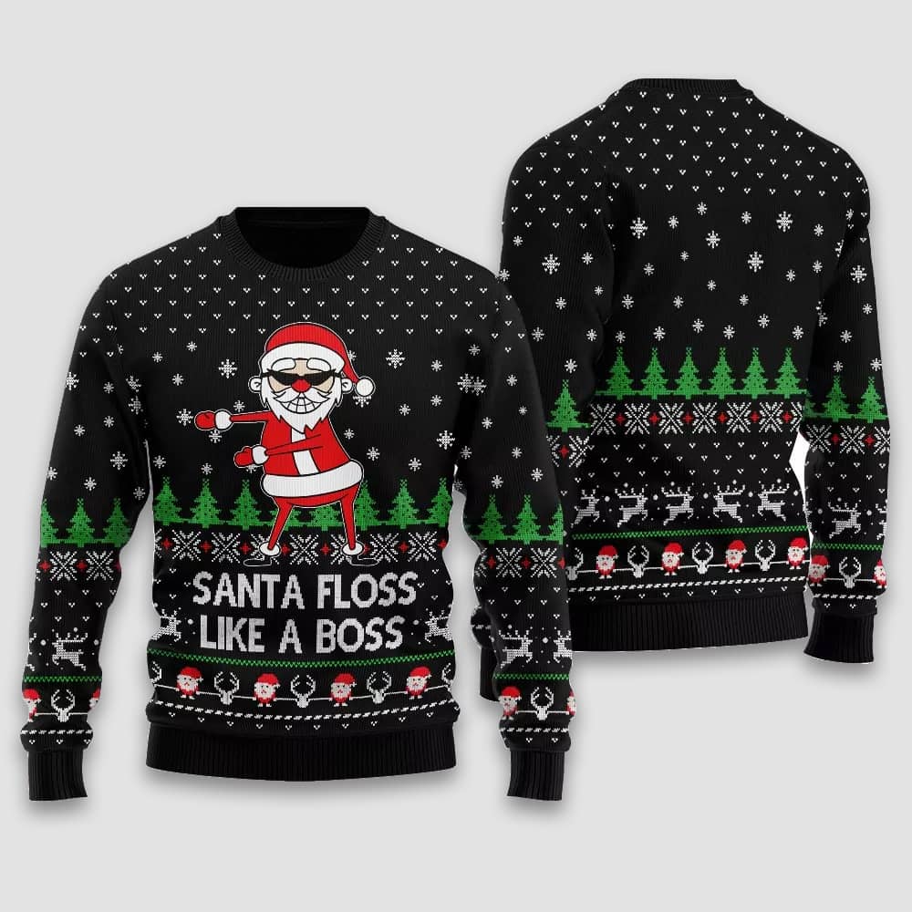 Turn heads this season with the Santa Floss Like A Boss Ugly Christmas Sweater. Featuring a dancing Santa and viral pop culture flair, this design blends tradition with Gen Z humor, spotlighting the evolution of holiday icons in the digital age.