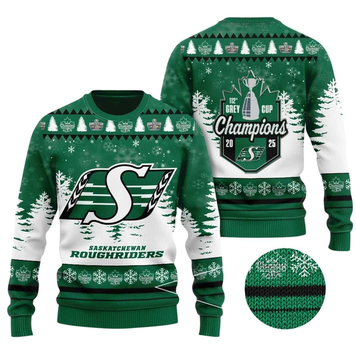 Honor the Saskatchewan Roughriders’ legendary 2025 Grey Cup triumph with this Saskatchewan Roughriders 2025 Grey Cup Champions Ugly Sweater. Featuring championship graphics and historic team motifs, it’s a wearable tribute to grit, pride, and the enduring spirit of Canadian football fandom.