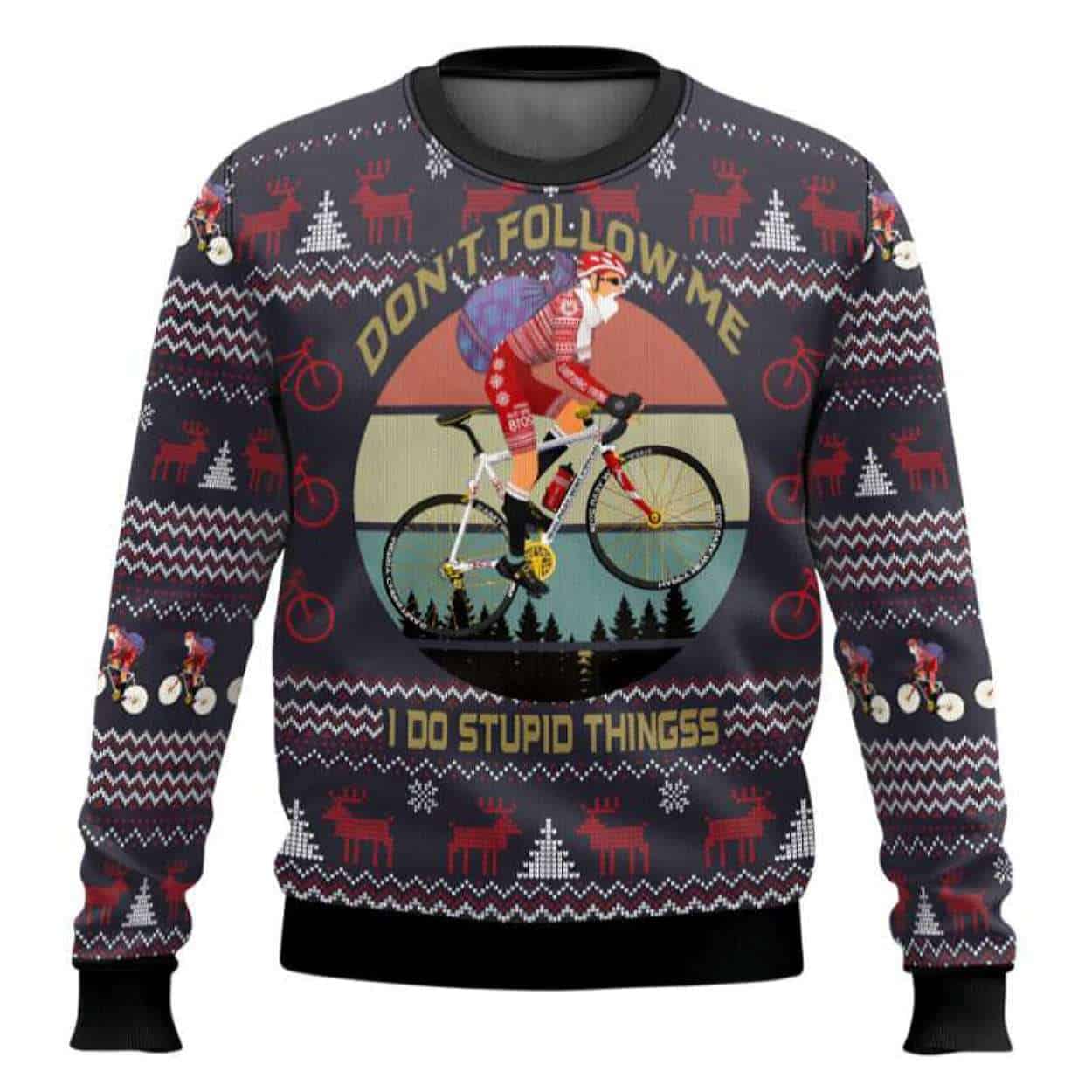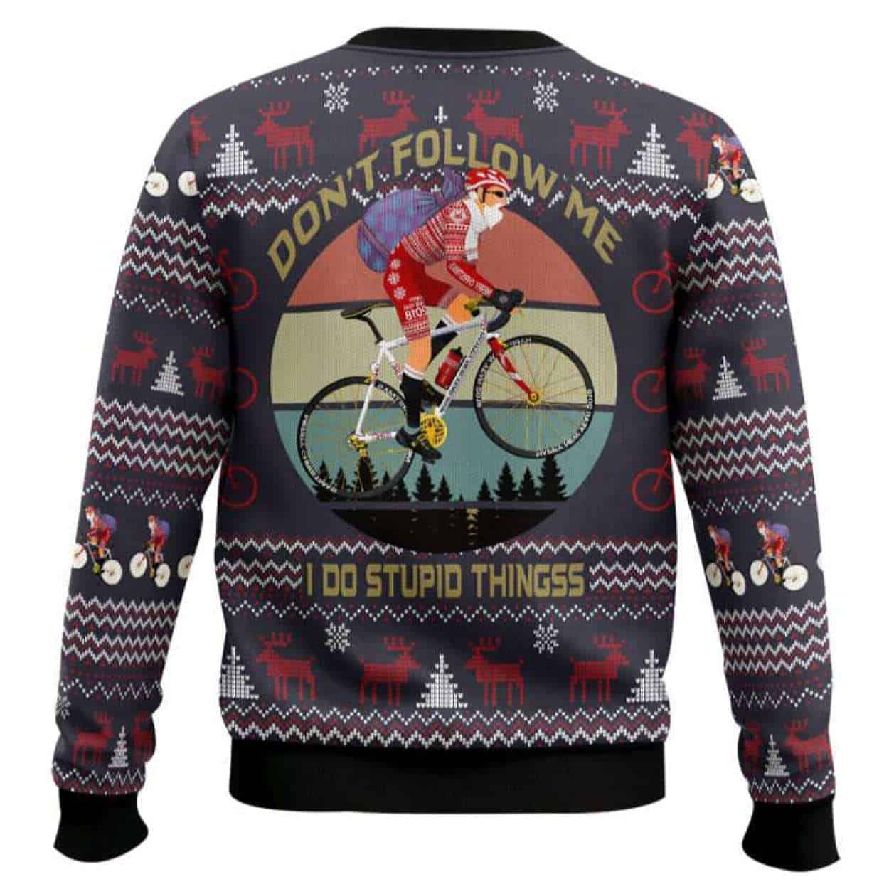 This design pays homage to cycling culture, connecting the determination of bikers with the defiance of non-conformity. It blends satire and athletic grit, turning a festive symbol into a statement about endurance, rebellion, and the freedom to laugh at seasonal seriousness.