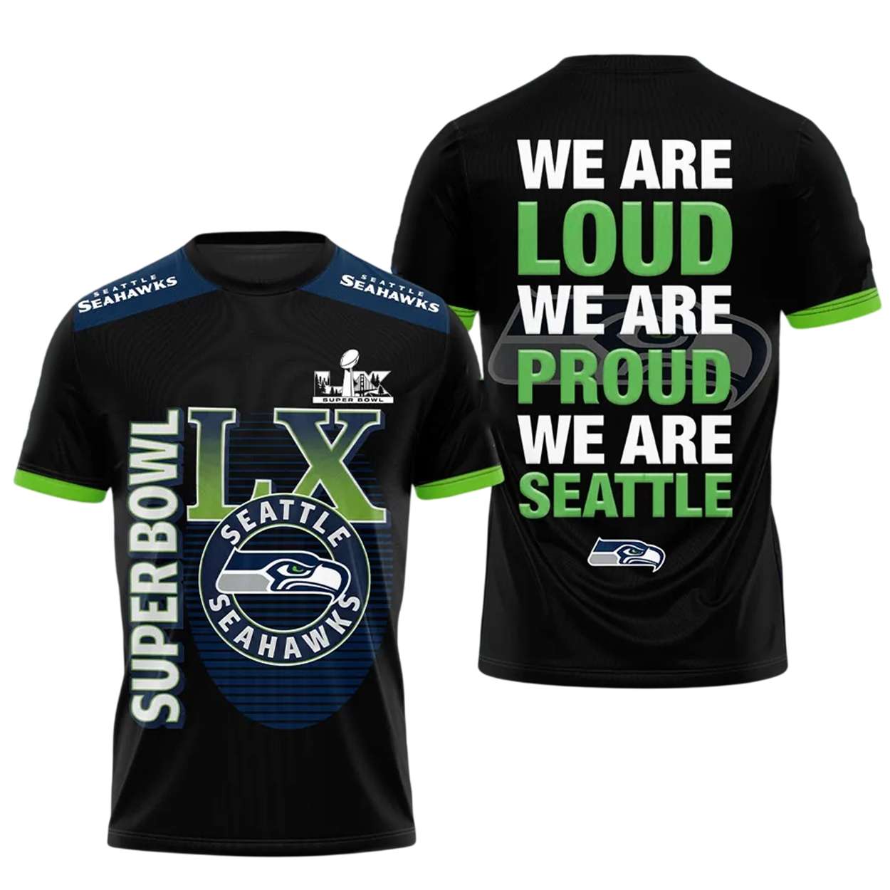 Show your Seattle pride with the Seahawks Superbowl LX We Are Loud We Are Proud We Are Seattle Shirt Featuring bold graphics, iconic slogans, and historic Seahawks energy, this shirt connects fans to the heart of the Pacific Northwest’s football legacy.