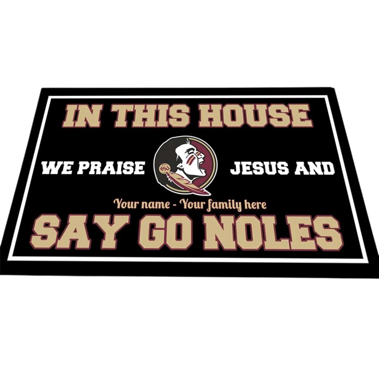 Welcome guests with faith and team pride using the Seminoles Customized In This House We Praise Jesus and Say Go Noles Doormat. Featuring bold graphics and personal touches, it honors Florida State’s legacy and the values that unite fans and families.