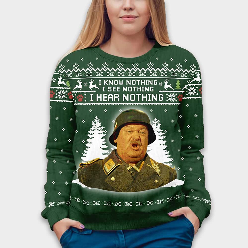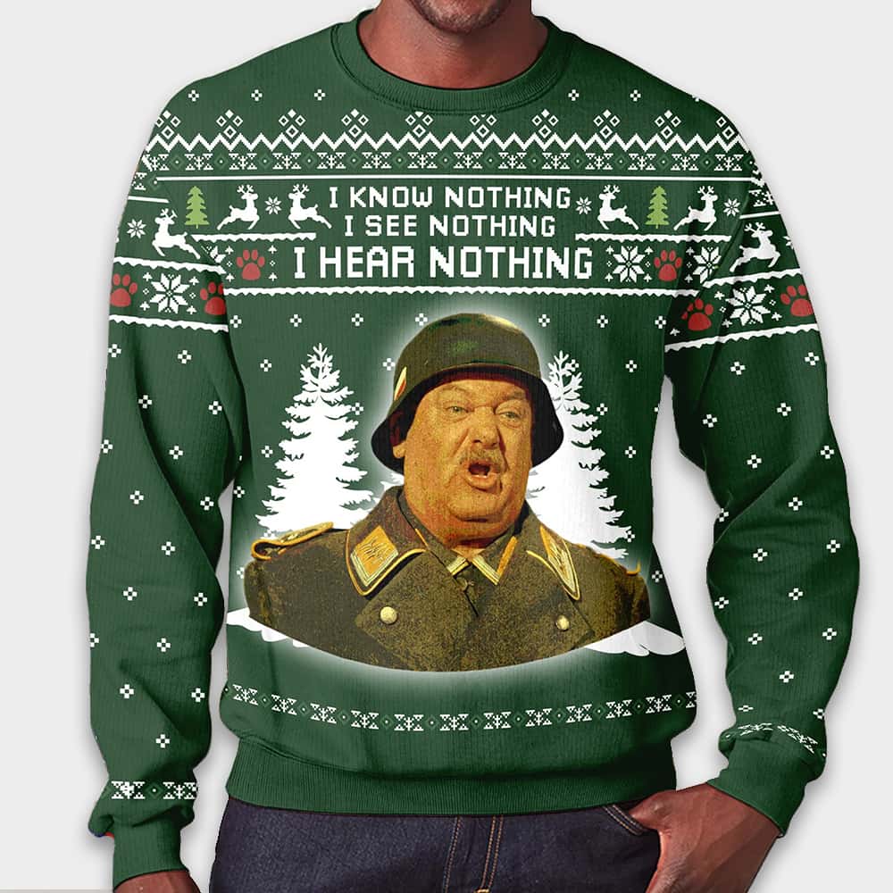 Sergeant Schultz I Know Nothing Christmas Ugly Sweater – Nostalgic Holiday Humor