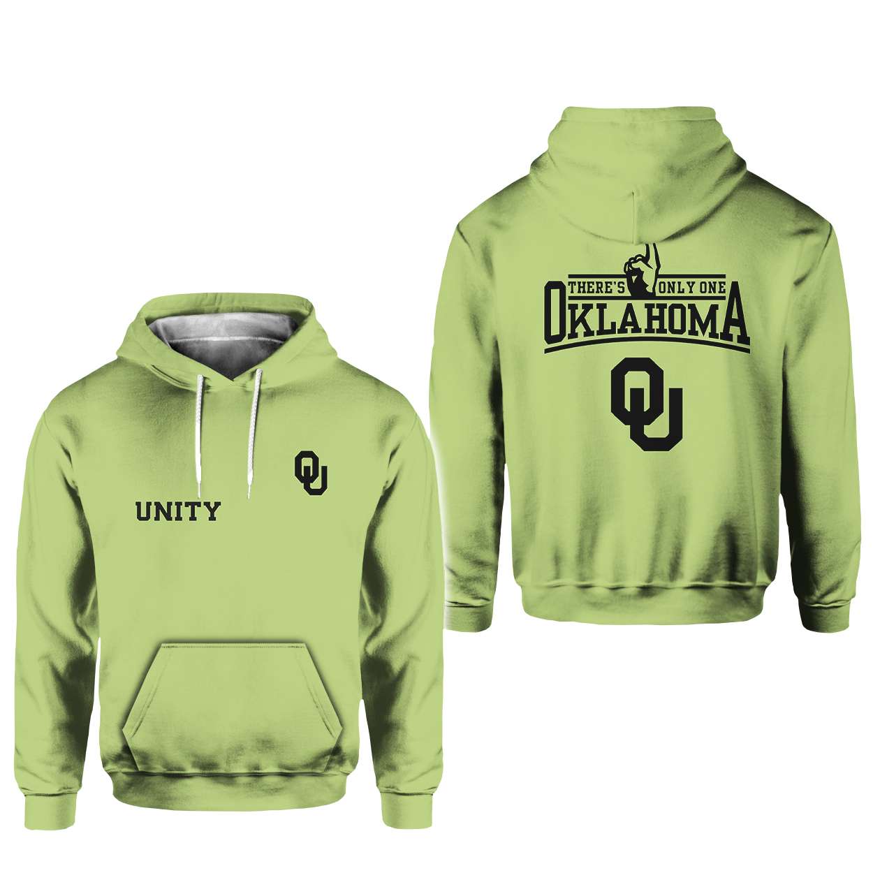 The front of the hoodie features the word UNITY beside the OU emblem, echoing the university’s long-standing commitment to community. This theme ties deeply to Oklahoma’s cultural identity, where resilience and connection have shaped generations of students, fans, and locals.