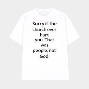 The Sorry If The Church Ever Hurt You That Was People Not God Shirt is a bold statement for those who have experienced the hurtful side of human behavior within religious communities. It represents an apology for the mistakes of individuals while making the distinction between people’s actions and the teachings of God. This shirt serves as a reminder to those who have been hurt that it was not their faith, but rather the imperfections of people, that caused their pain.
