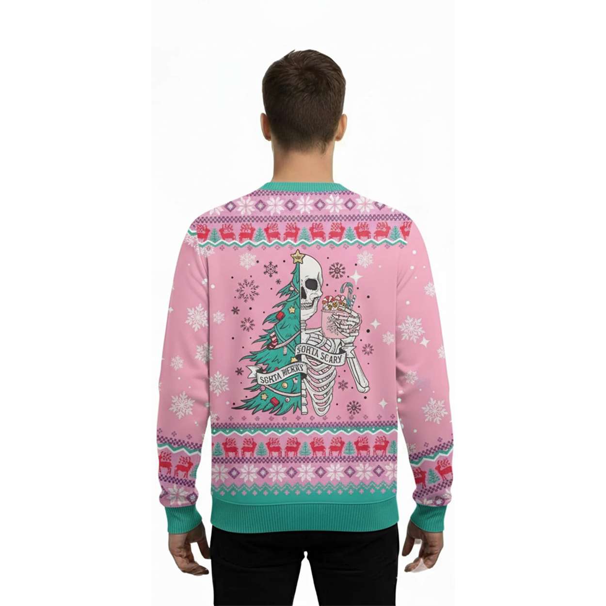 Unwrap the eerie charm of the Sorta Merry Sorta Scary Christmas Fuzzy Ugly Christmas Sweater—where festive cheer meets spooky flair. Featuring a skeleton tangled in holiday chaos, this bold design fuses winter whimsy with Halloween edge. Perfect for rebels with seasonal spirit.
