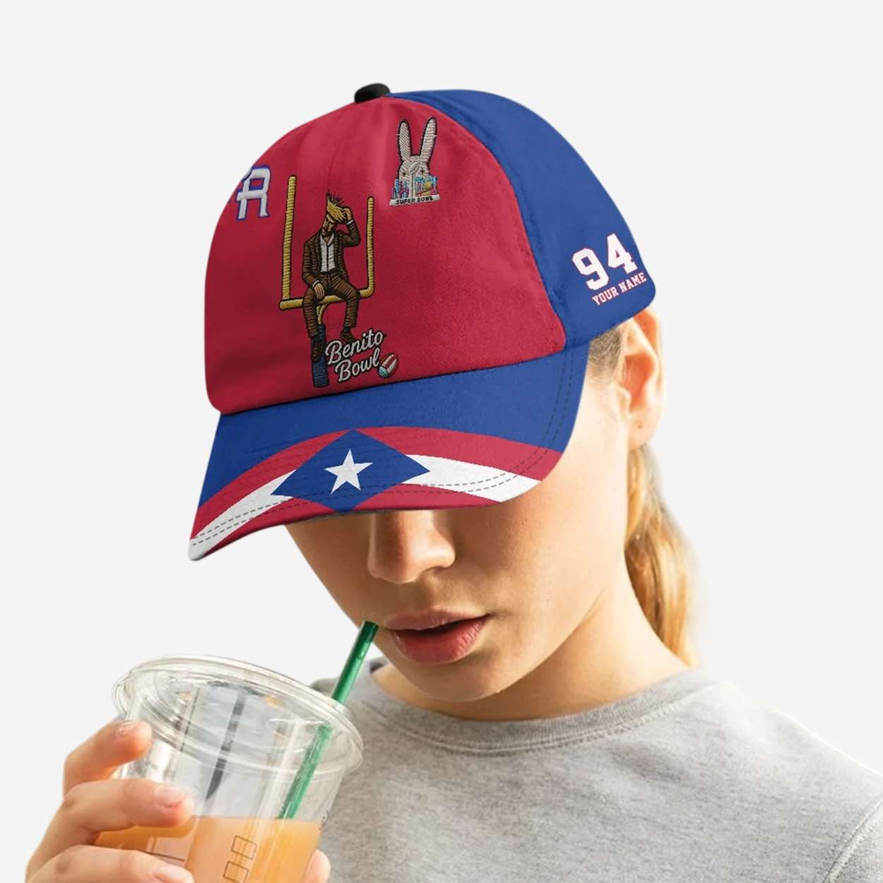 The Super Bowl Bunny Classic Cap Custom Any Name blends Puerto Rican pride, pop culture, and football energy. Featuring Benito’s iconic imagery and desert motifs, this cap honors the intersection of music, sport, and identity—perfect for fans who value bold expression.