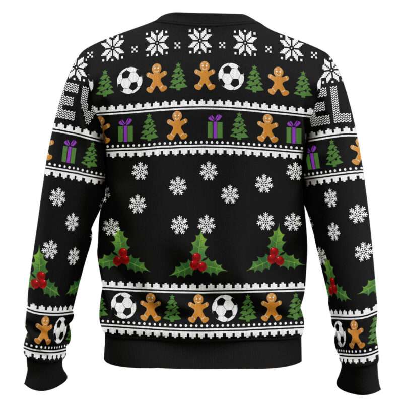 Wearing this sweater connects fans to more than a character—it’s a nod to the movement of empathy, friendship, and unity sparked by the series. The design mixes holiday imagery with soccer symbols, creating attire rooted in both sport and human connection.