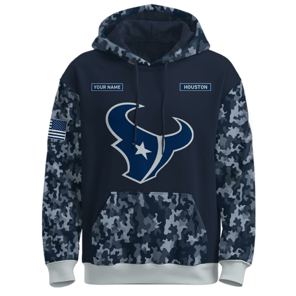 A true collector’s item, this hoodie blends sports fandom with military history, allowing the wearer to proudly showcase their affiliation with both the Houston Texans and the U.S. Navy. It’s a must-have for those who appreciate the intertwining of history, service, and sportsmanship, making it an ideal addition to any fan’s wardrobe for years to come.