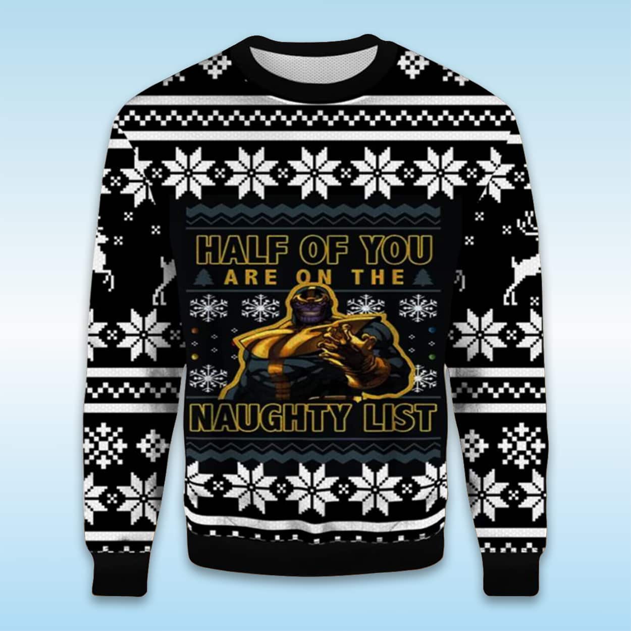 Thanos Marvel Half Of You Are On The Naughty List Ugly Christmas Sweater – Naughty List Edition