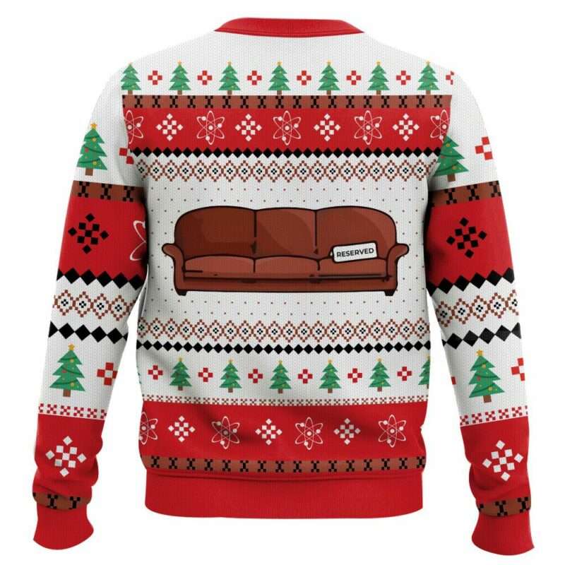 Few television lines are as instantly recognizable as Sheldon Cooper’s firm declaration: “That’s my spot.” This sweater immortalizes that moment, showcasing his beloved seat on the couch from The Big Bang Theory—a symbol of routine, logic, and personal comfort.