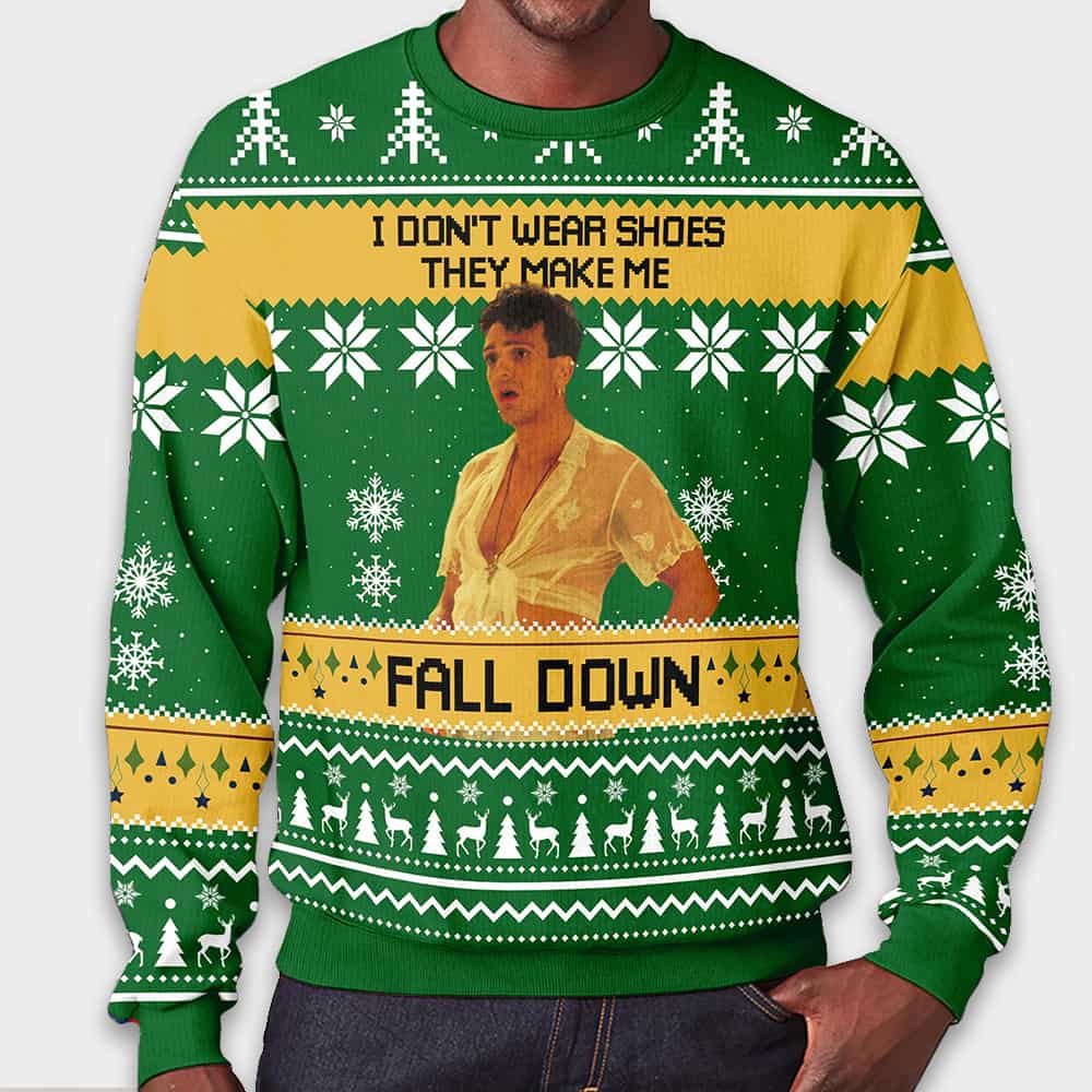 The Birdcage Agador Spartacus I Don’t Wear Shoes They Make Me Fall Down Ugly Christmas Sweater – Iconic Quote Edition