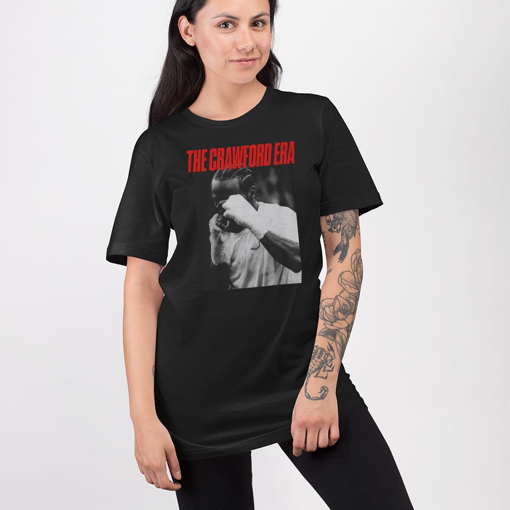 The Crawford Era Shirt showcases Terence Crawford, a boxer whose skill and grit have defined a generation. His precision in the ring has earned him a reputation as one of the most formidable athletes of his time, truly a force in boxing history.