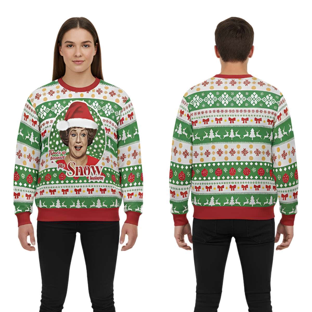 The phrase “There’s a chance of Snow tonight” cleverly plays on seasonal double meanings—hinting at both weather and personality. It evokes the playful unpredictability of winter gatherings, where laughter, warmth, and a touch of sass are always in the forecast.