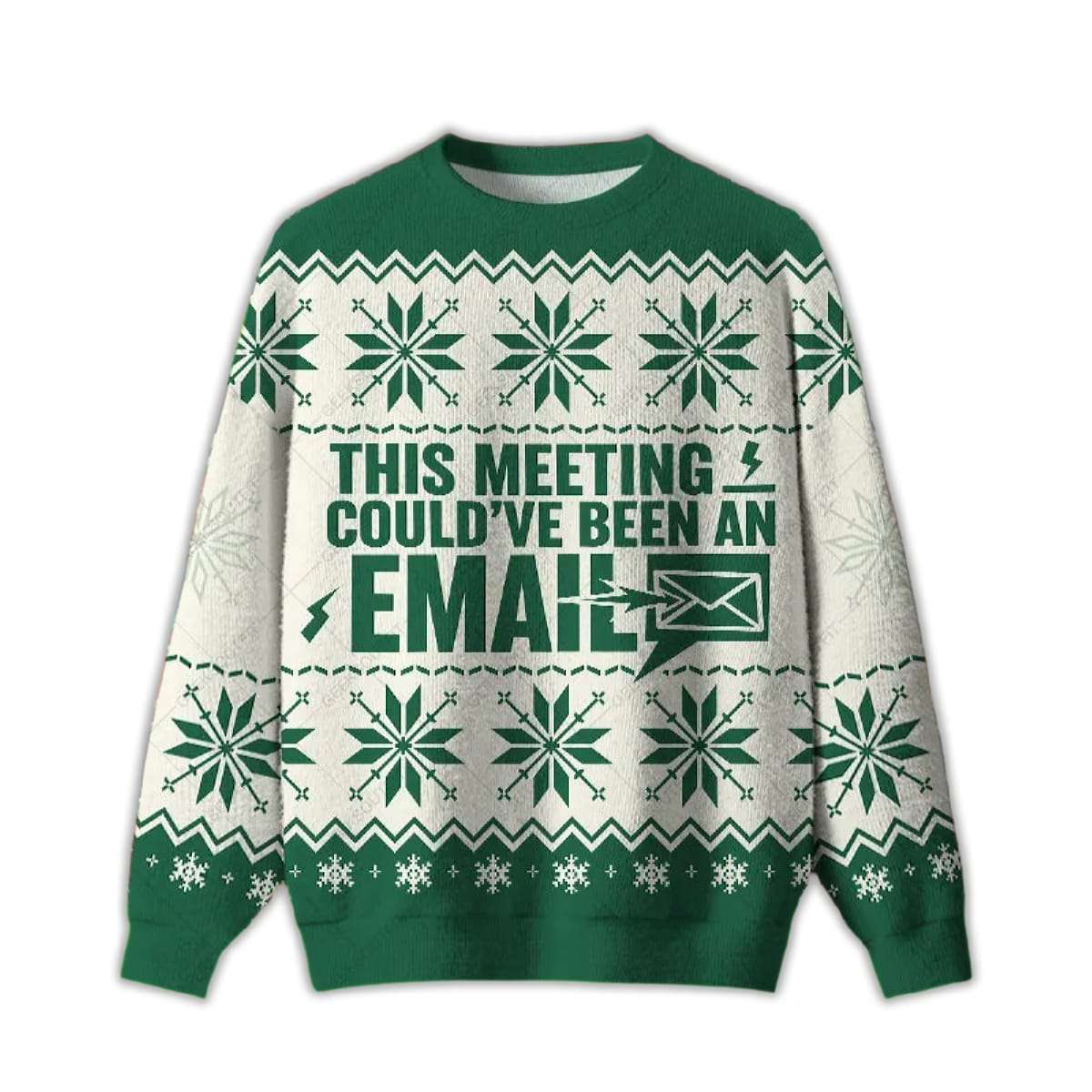This sweater channels the frustration of countless professionals trapped in redundant meetings. The phrase became a viral mantra in the rise of remote work, echoing the shift toward asynchronous communication and the push for smarter, more flexible workflows.