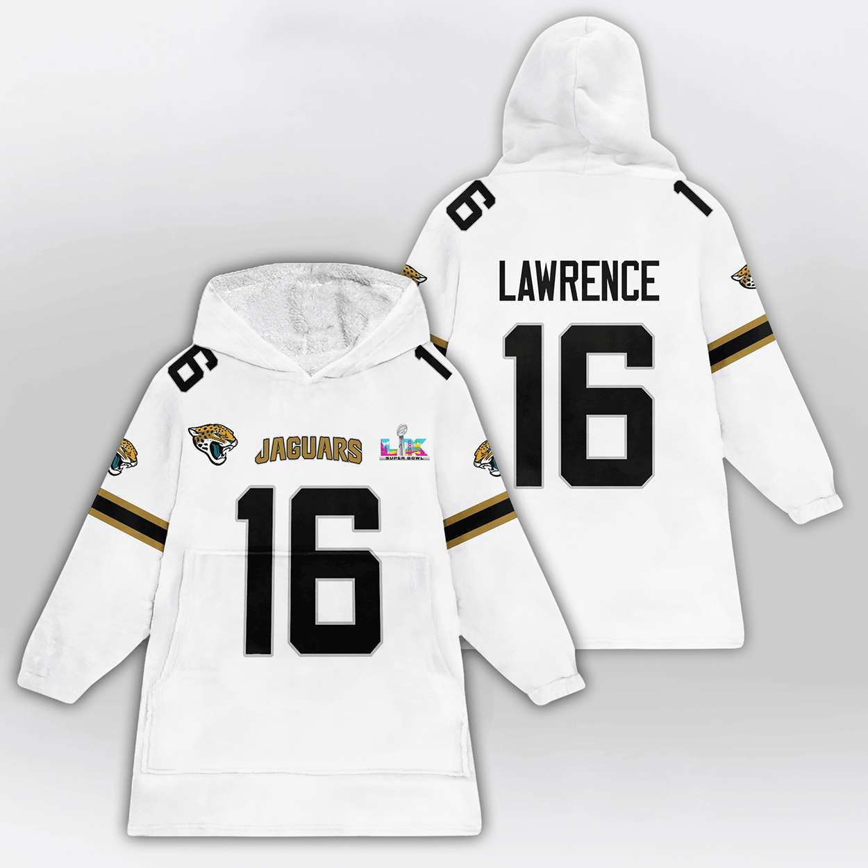 Show your support for Jacksonville’s rising star with the Trevor Lawrence 16 Jacksonville Football SB LX Blanket Hoodie. Featuring bold graphics and Super Bowl symbolism, this hoodie honors a quarterback who turned doubt into dominance and reignited hope in a city hungry for victory.