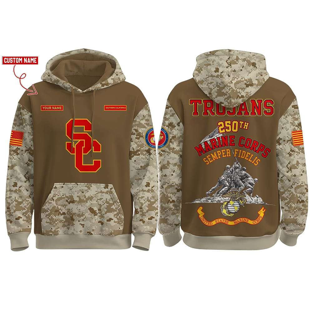 Wearing this hoodie affirms loyalty not only to the USC Trojans but also to the history of Marines worldwide. It speaks of resilience, unity, and shared purpose—qualities that inspire athletes, veterans, and everyday citizens who respect the legacy of the United States Marine Corps.