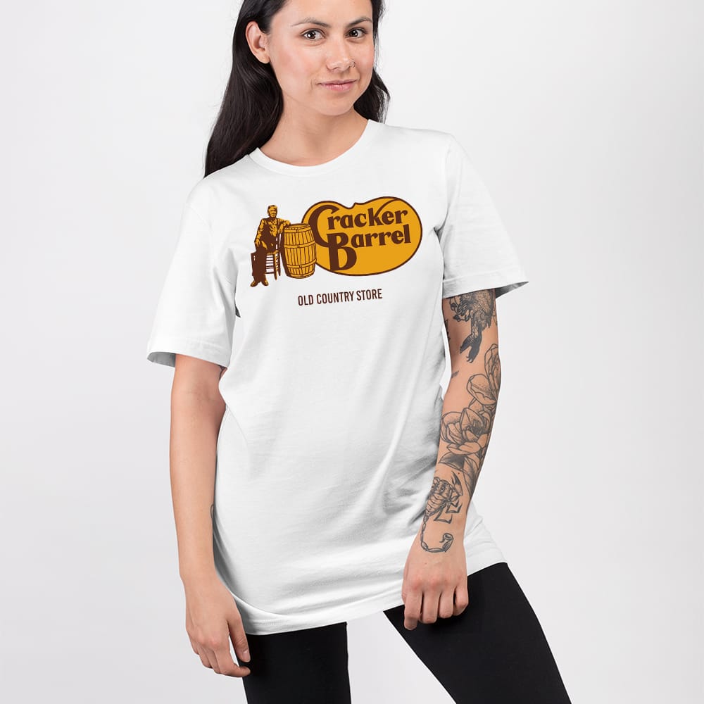 Cracker Barrel itself has stood for decades as a symbol of country stores, wooden barrels, and rustic porches—a place that evokes conversations about rural heritage, folk music, and the warmth of Southern hospitality. Pairing this with Trump introduces a juxtaposition: a businessman-turned-political leader whose rise connected with those same communities while sparking nationwide conversations on class, identity, and values. Wearing this shirt taps into that layered cultural narrative.