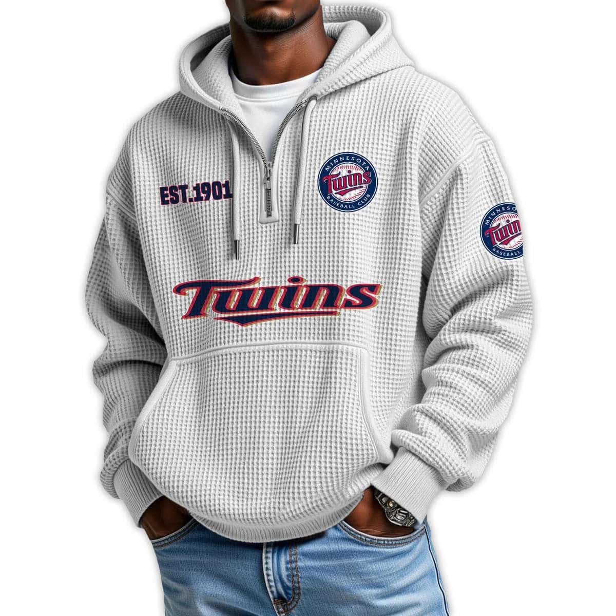 Show your pride in Minnesota’s baseball heritage with the Twins Est 1901 Quarter Zip Waffle Hoodie. Featuring iconic logos and historical references, this hoodie connects fans to legendary players, pivotal moments, and the enduring spirit of the Twin Cities.