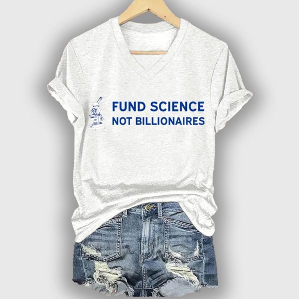 V-neck Retro Stand Up For Science Fund Science Not Billionaires Print T-Shirt – Fund Science, Not Billionaires