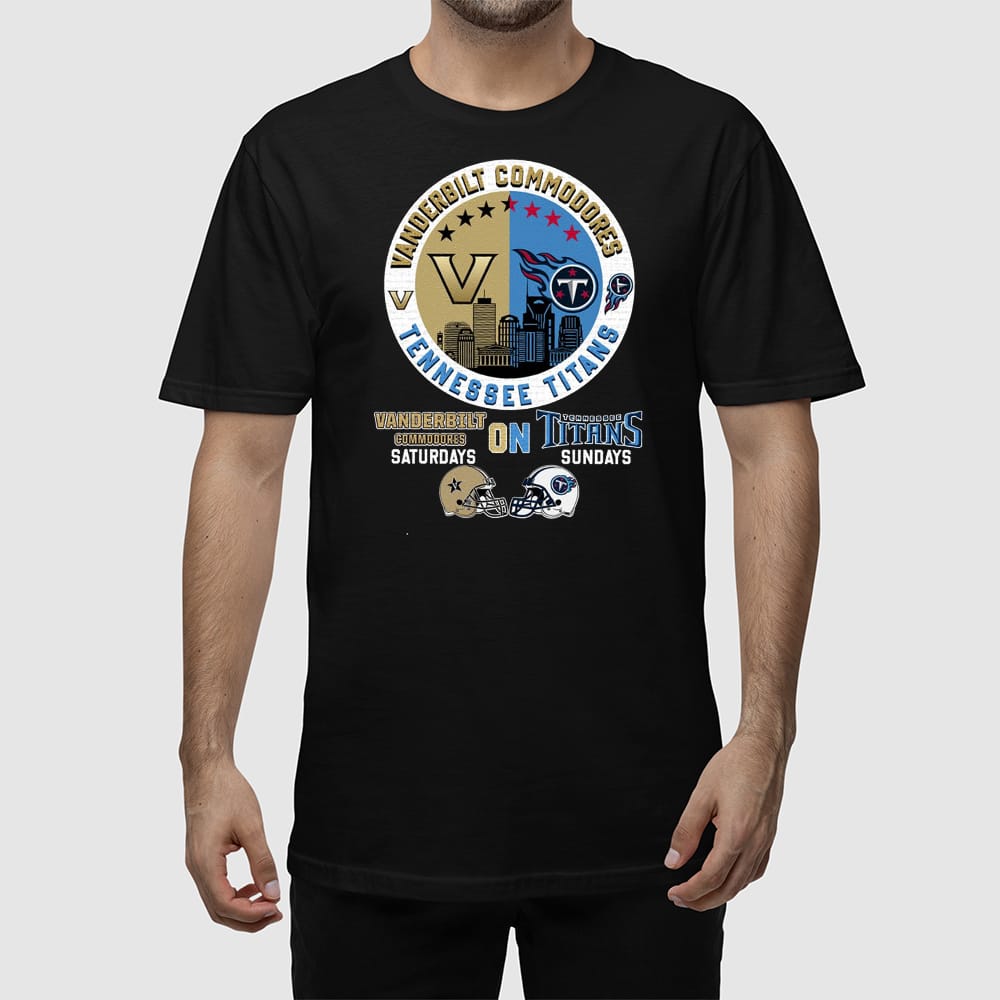 Beyond logos and colors, this shirt captures a cultural truth: Nashville is a city where Saturdays and Sundays are sacred. It reflects the rhythm of a community that gathers to cheer for the Commodores on college game day and then turns its voice toward the Titans the very next afternoon. Whether you’re in the stands, at a tailgate, or watching with family, this shirt is a unifying emblem of Tennessee’s enduring football spirit.