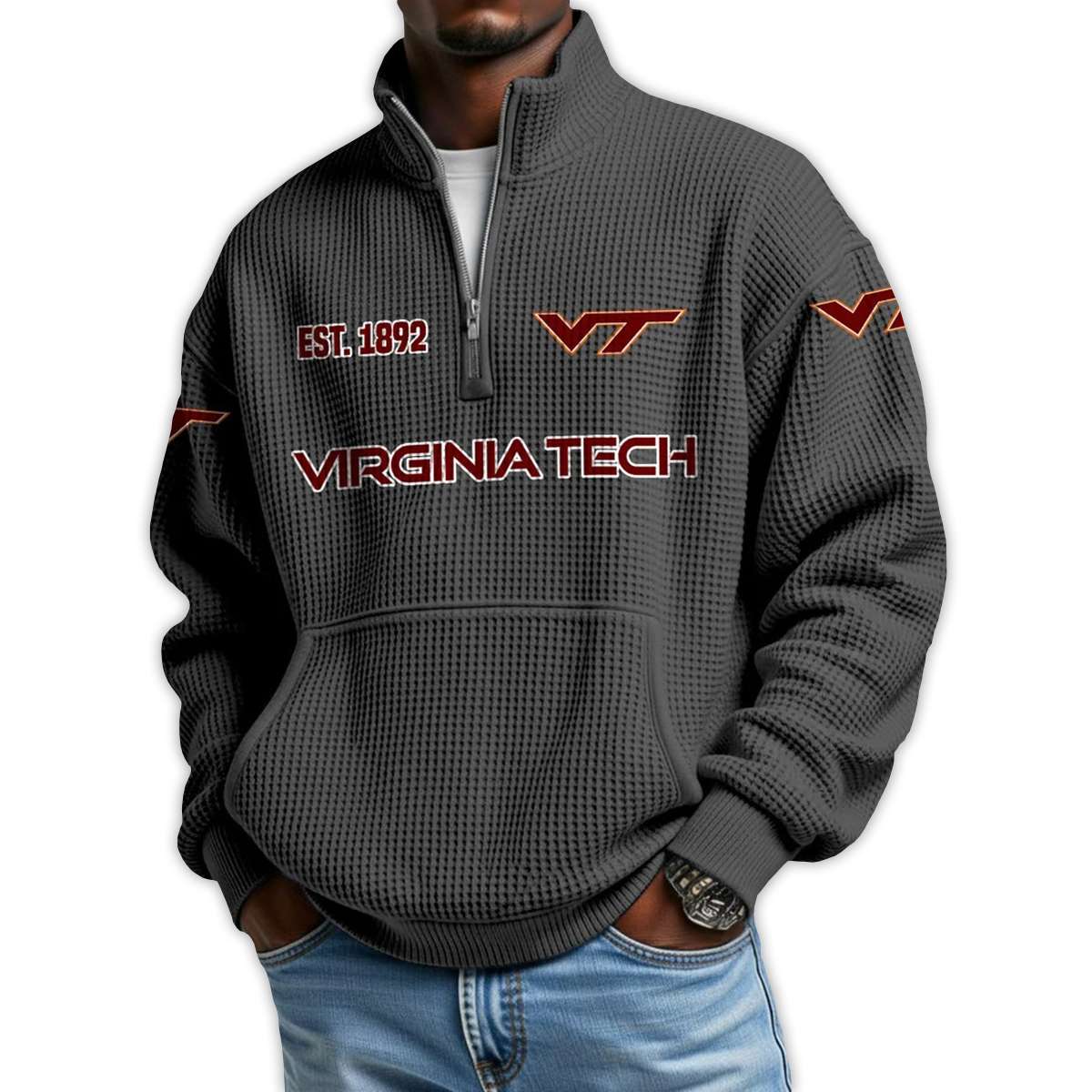 Show your Hokie pride with the Virginia Tech Football Est 1892 Waffle Stand Collar Half Zip Sweatshirt. Featuring bold VT graphics and historic roots, this pullover connects fans to legendary players, iconic games, and a legacy of grit and unity.