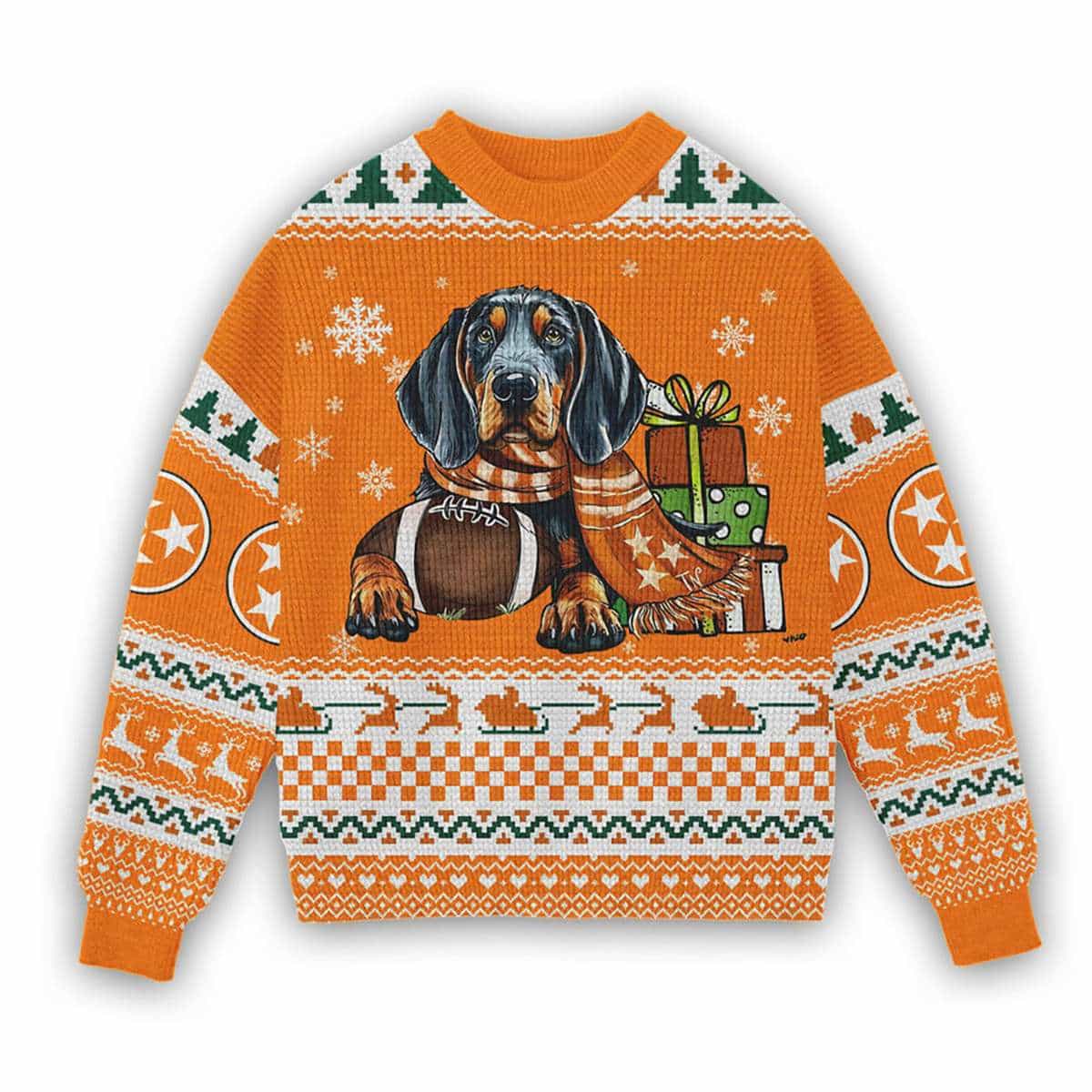 The imagery of Santa, trees, and festive patterns reflects Appalachian pride and unity. It’s a wearable tribute to Tennessee’s enduring legacy, from Neyland Stadium roars to family gatherings steeped in orange and white tradition.