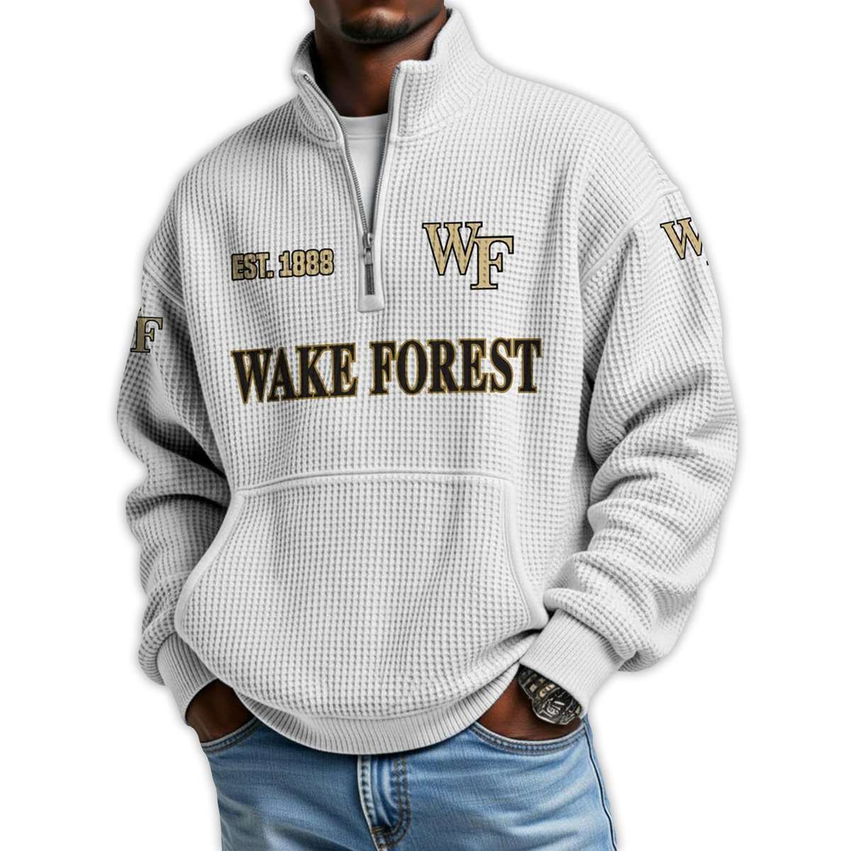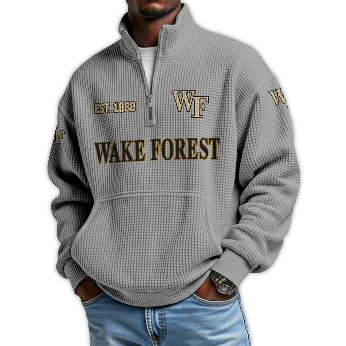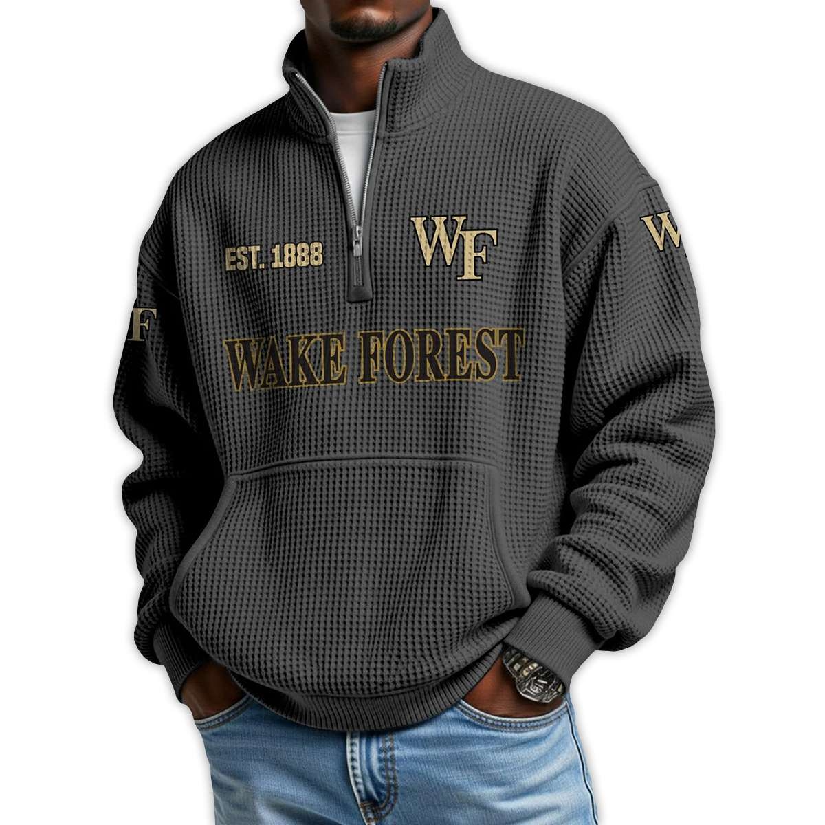 Show your Wake Forest pride with this Wake Forest Football Est 1888 Waffle Stand Collar Half Zip Sweatshirt. A tribute to historic gridiron grit, iconic players, and the enduring legacy of Demon Deacon spirit—crafted for fans who value heritage and heart.
