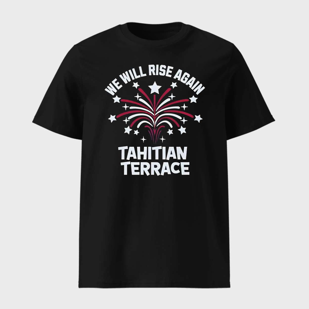 Wear resilience with pride. The We Will Rise Again Tahitian Terrace Shirt honors a community’s spirit through bold design and historical symbolism. A tribute to strength, unity, and the enduring legacy of Tahitian Terrace’s cultural heartbeat.