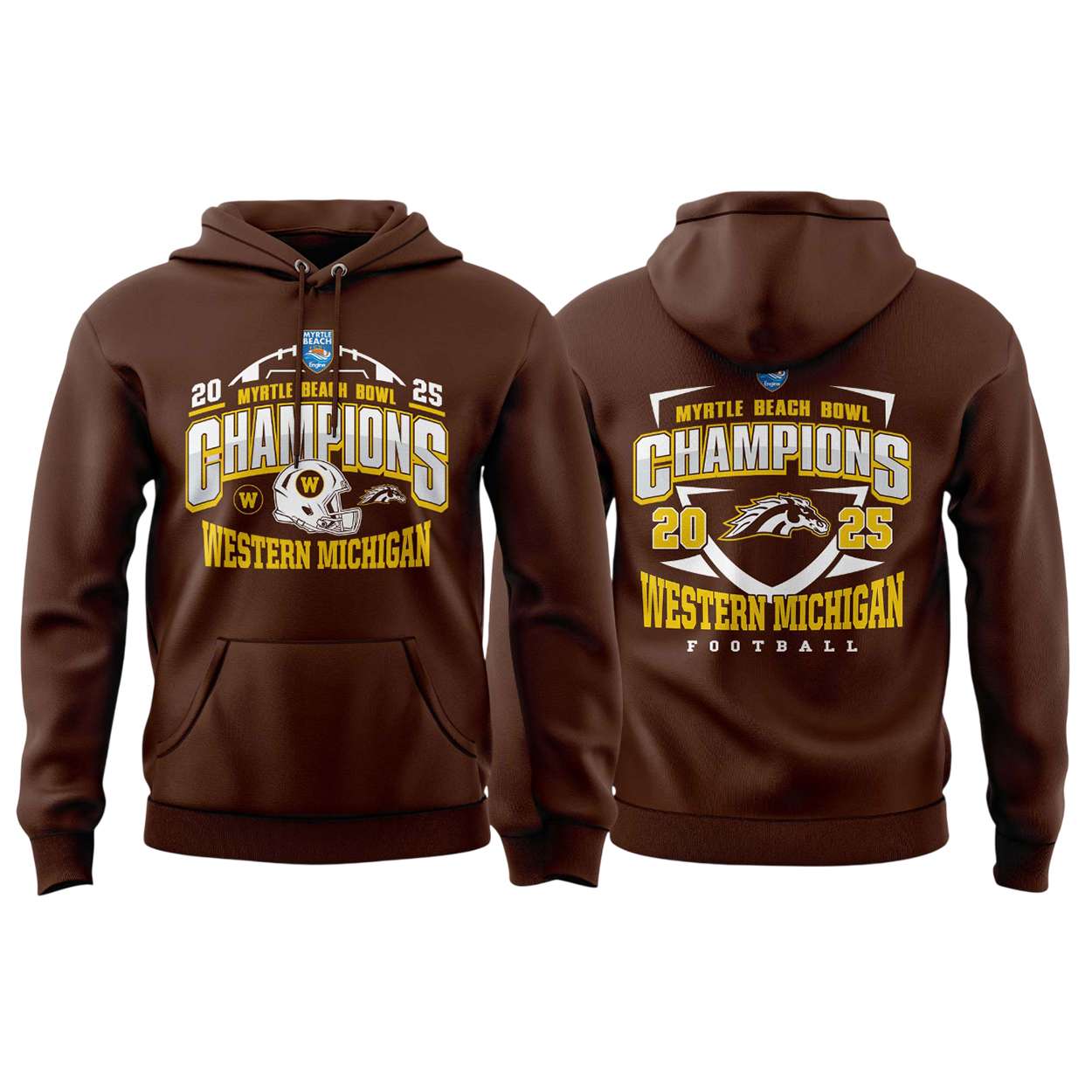 Show your pride with the Western Michigan Broncos 2025 Myrtle Beach Bowl Champions Hoodie. Featuring bold graphics and historic details, this hoodie honors the team’s victory, standout players, and the enduring spirit of college football in Kalamazoo.