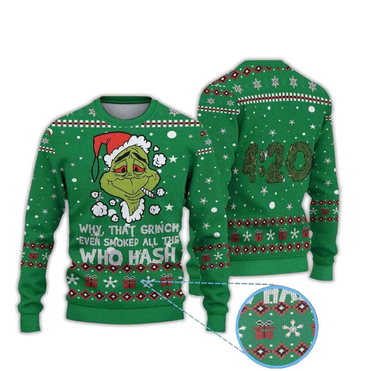 Why That Grnch Even Smoked All The Who Hash Grnch Ugly Christmas Sweater – Festive Humor Meets Cultural Commentary