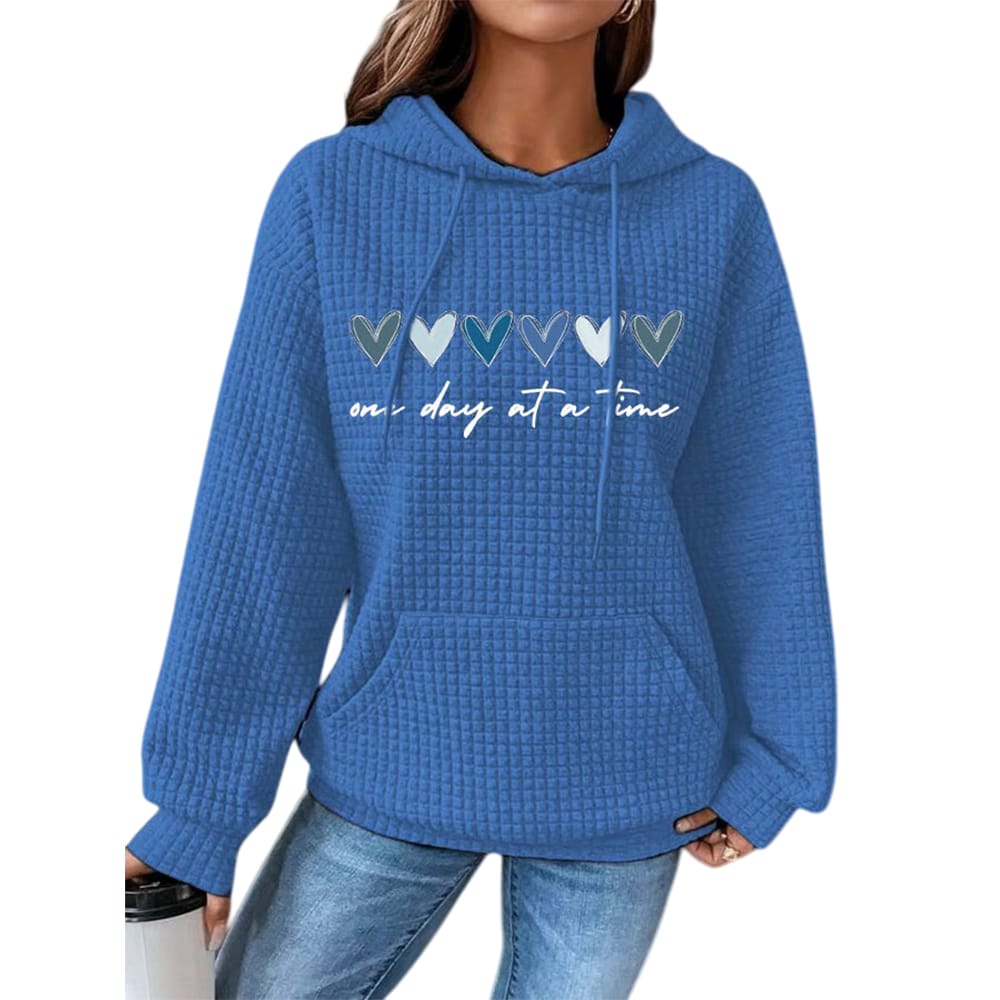 Women’s One Day At A Time Print Waffle Hoodie – Embrace Resilience and Comfort