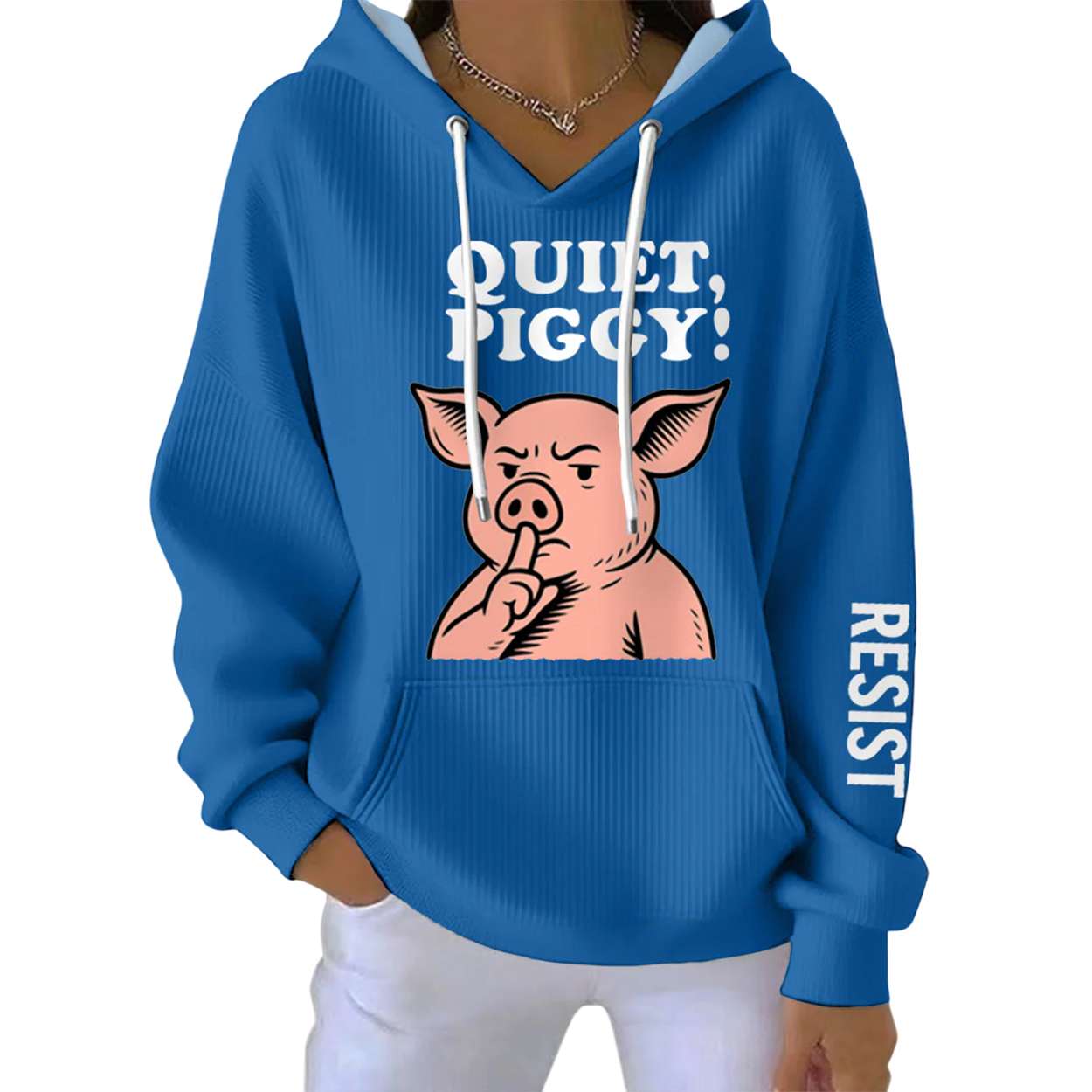 Make a bold statement with the Women’s Quiet Piggy This Piggy Won’t Be Quiet Resist Hoodie. Featuring a rebellious pig character and powerful messaging, this hoodie channels protest culture and social defiance into wearable art. Speak truth—without saying a word.