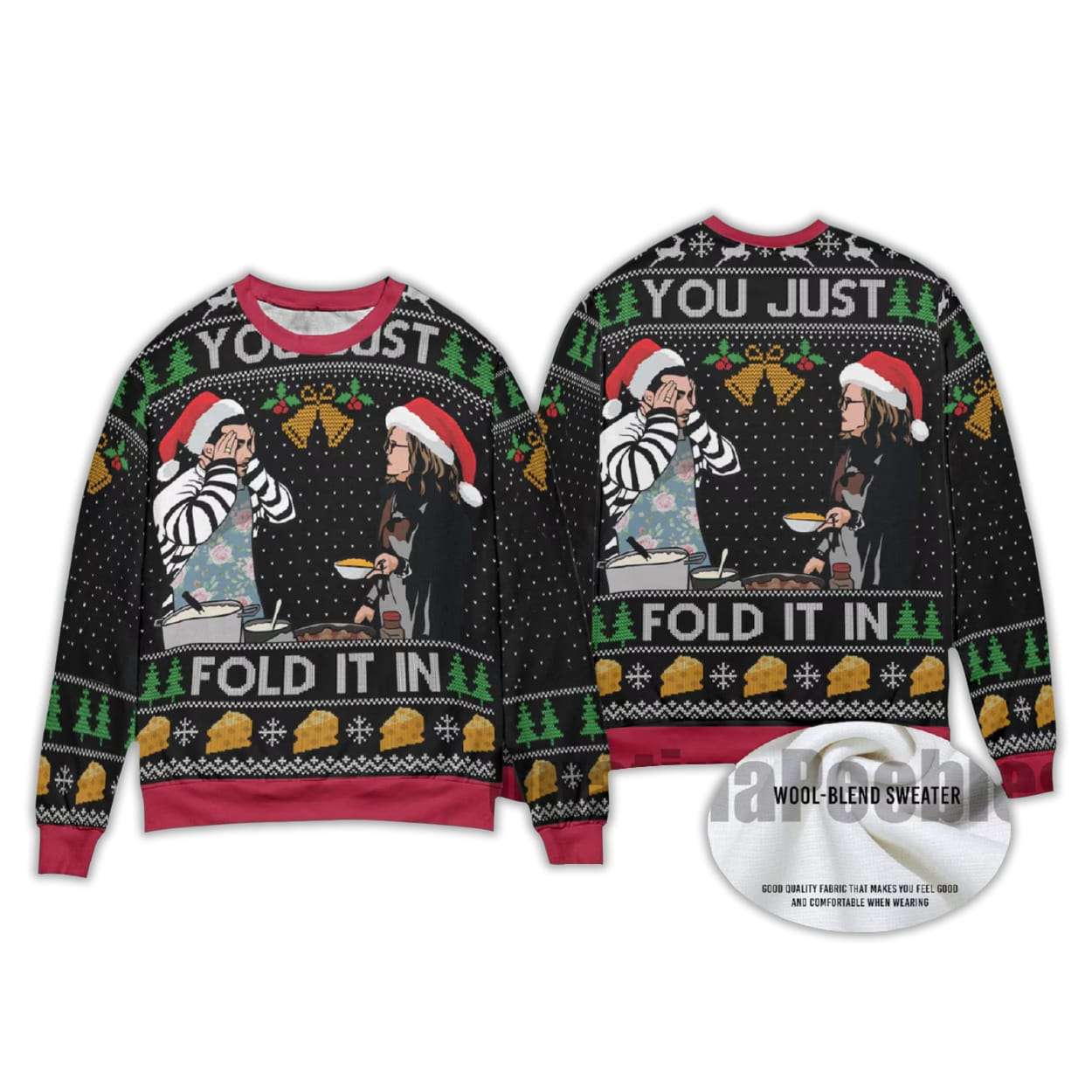 Add humor and heart to your holiday wardrobe with the You Just Fold It In Meme Christmas Ugly Sweater. Featuring David and Moira Rose from Schitt’s Creek, this design nods to one of TV’s most iconic cooking scenes—perfect for fans and meme lovers alike.